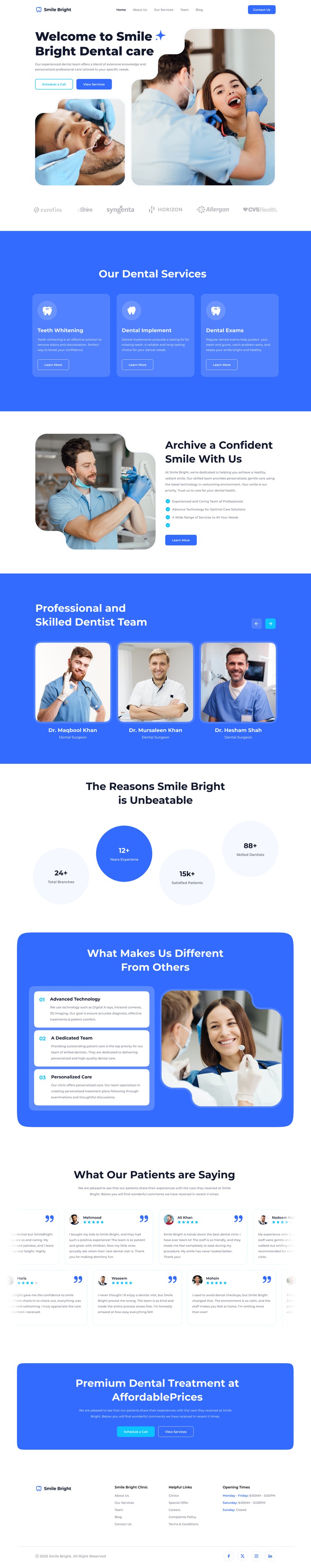 A Dental landing page made from Figma then convert it to live website using Framer.