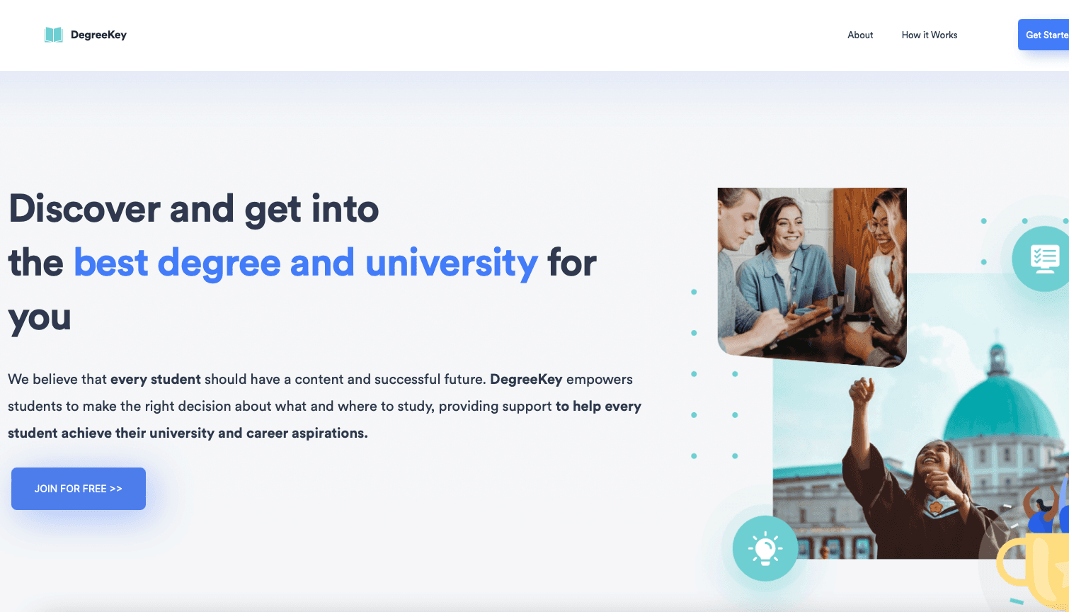 A homepage assisting pupils in identifying their perfect course selection design in Webflow.