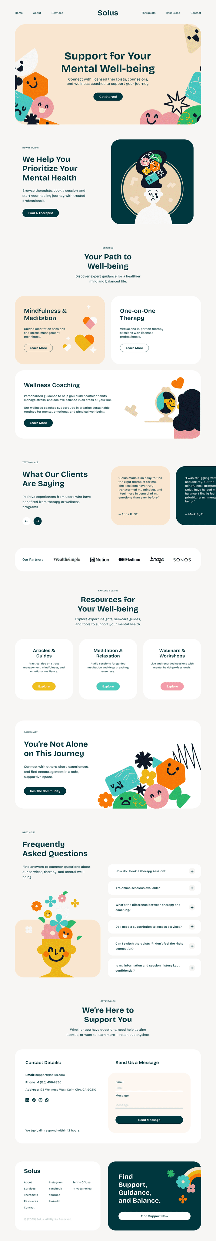 A Mental health support landing page design from Figma and convert it to Framer live site.